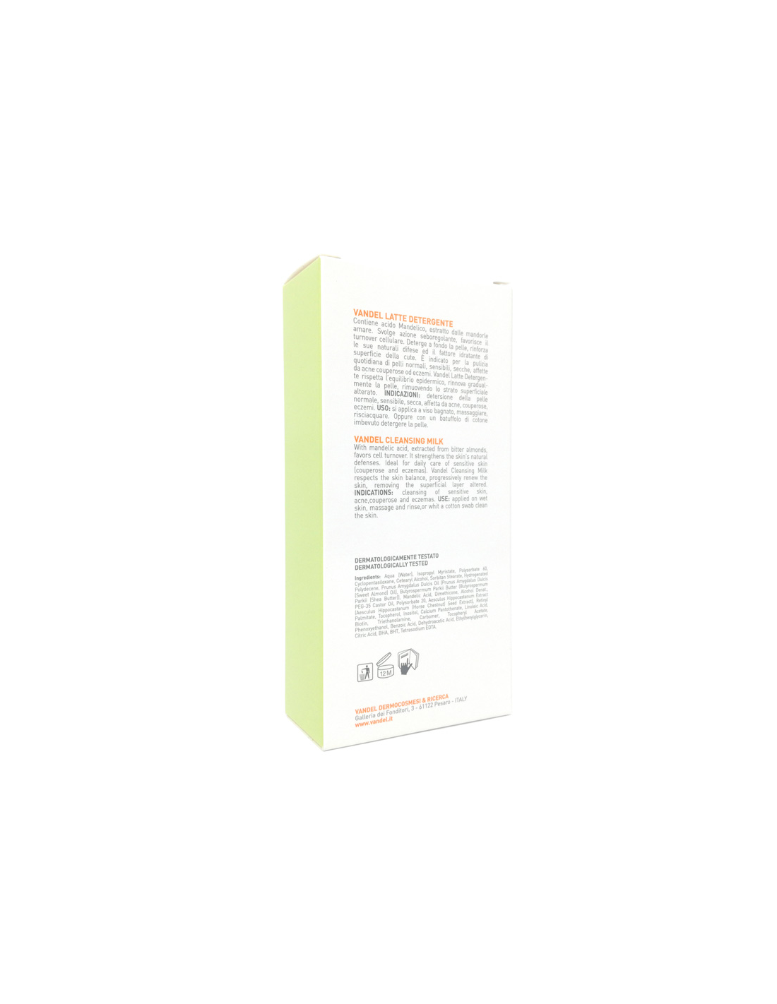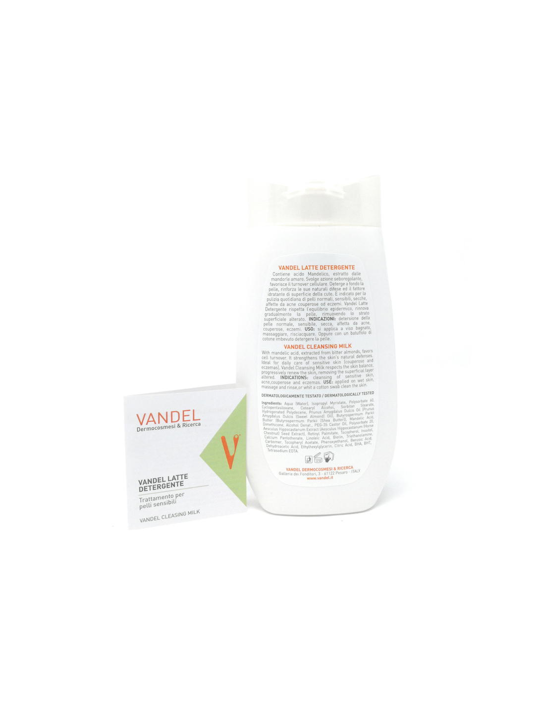 -Detergere la superficie cutanea da trattare con un batuffolo imbevuto di VANDEL LATTE DETERGENTE.
